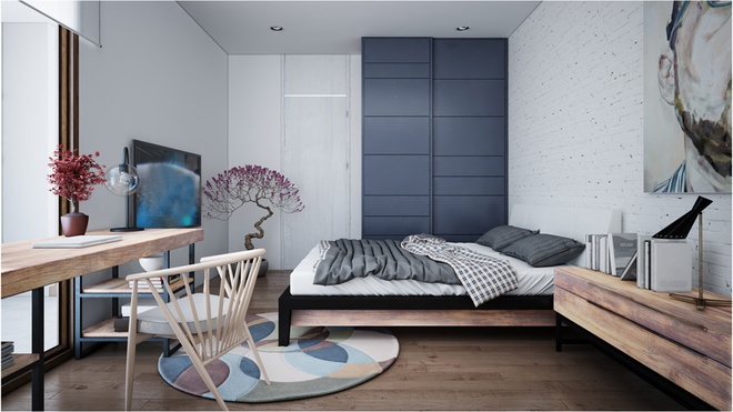Phòng ngủ nằm phía sau của ngôi nhà đảm bảo sự yên tĩnh tối đa. Gia chủ rất yêu thích sự thoải mái, gần gũi của không gian mở hướng ra thiên nhiên